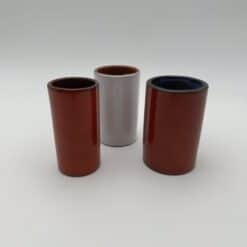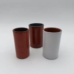 This set of Small Glazed Ceramic Vases captures the elegance of 1950s French studio ceramics. The design reflects the influence of Georges Jouve and his focus on form and material. Each piece features a clean cylindrical shape with no excess decoration. These vases highlight pure lines and balanced proportions.