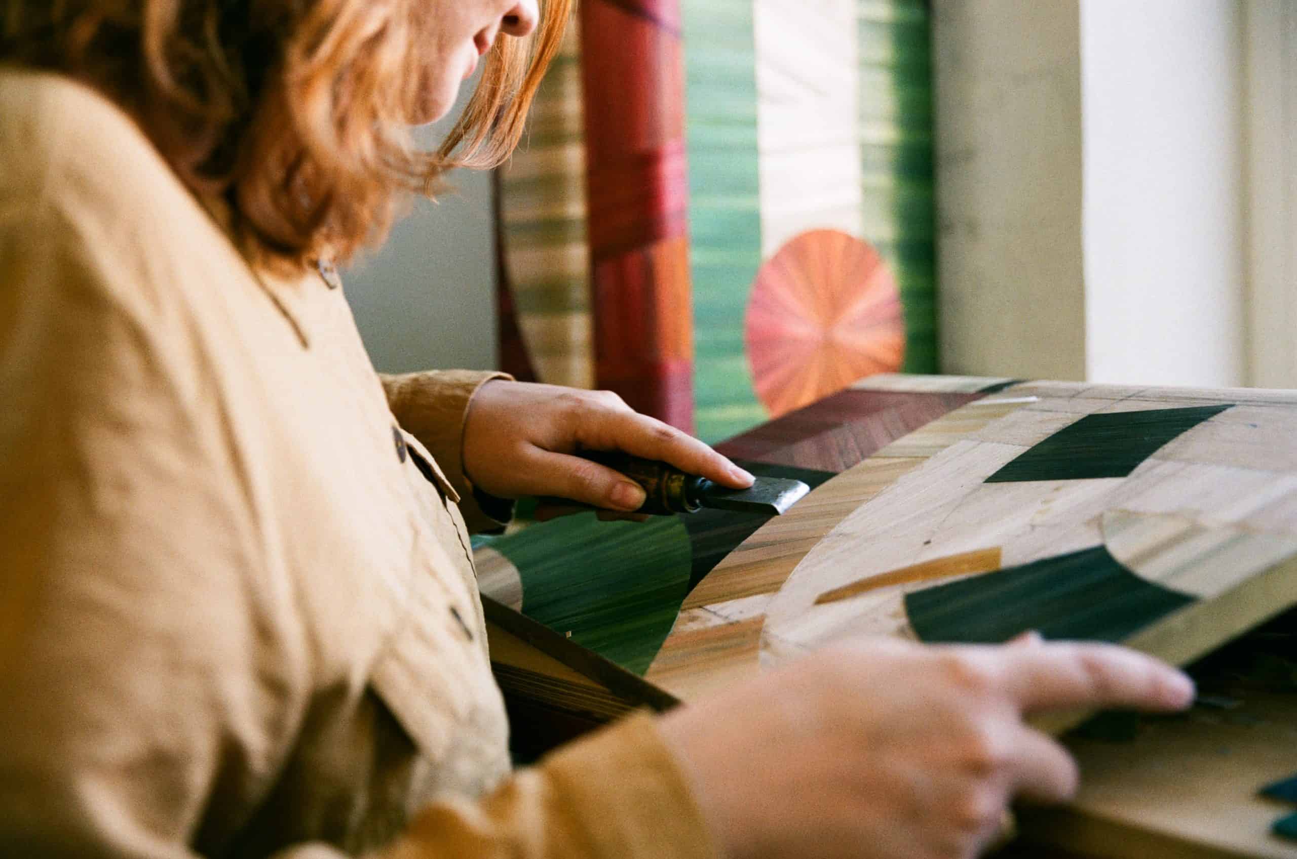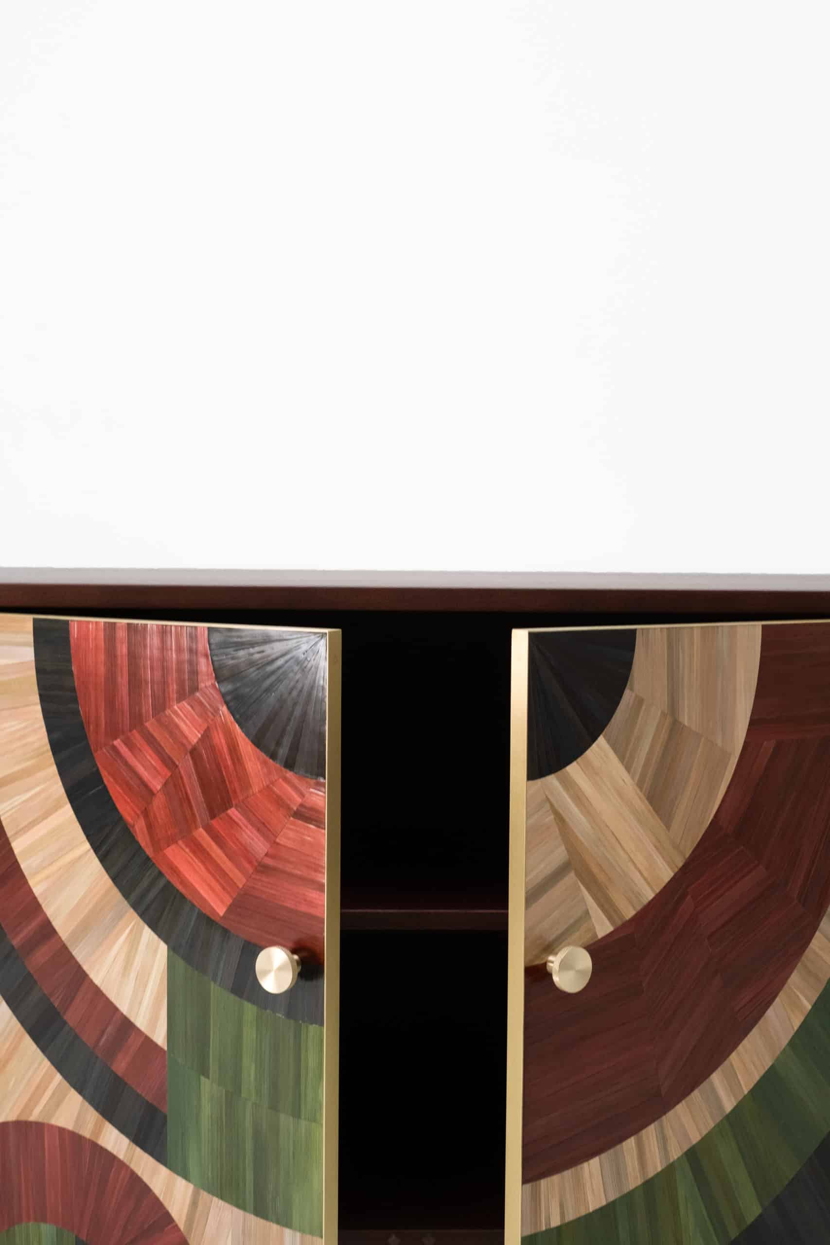Marquetry is an ancient technique of wood inlays used to create visual stories and details on the surfaces of furniture and objects.