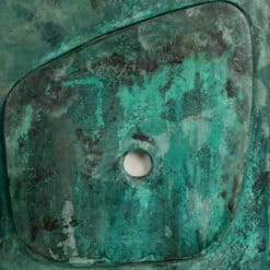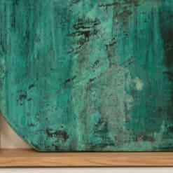 The panel creates a striking visual statement in galleries, offices, or modern interiors. Its combination of wood and copper patina adds both warmth and sophistication.