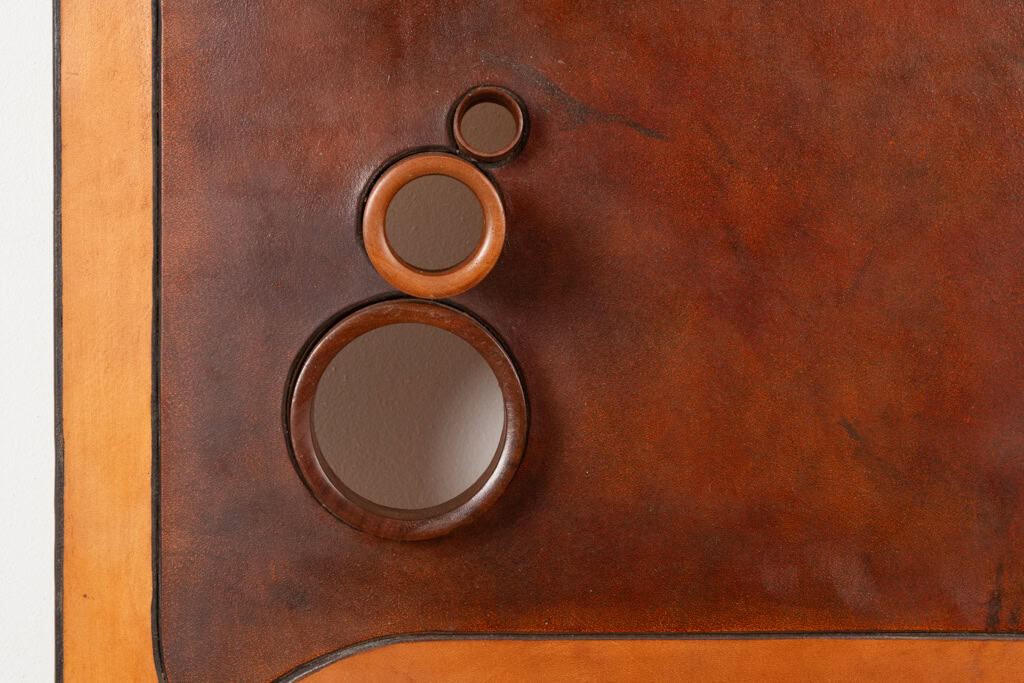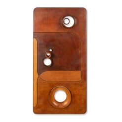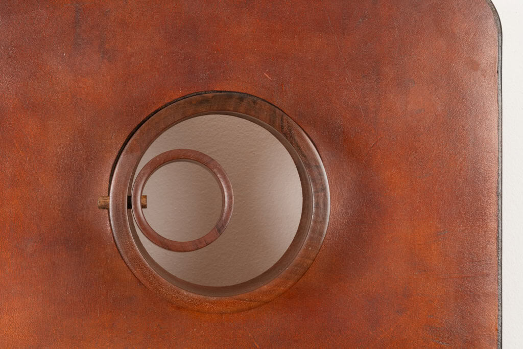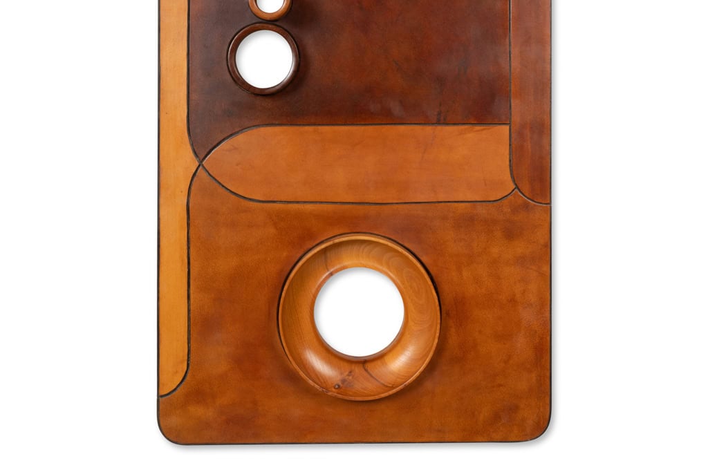 Stools and Wall Lamp, Cherry Wood and Leather, 1970s