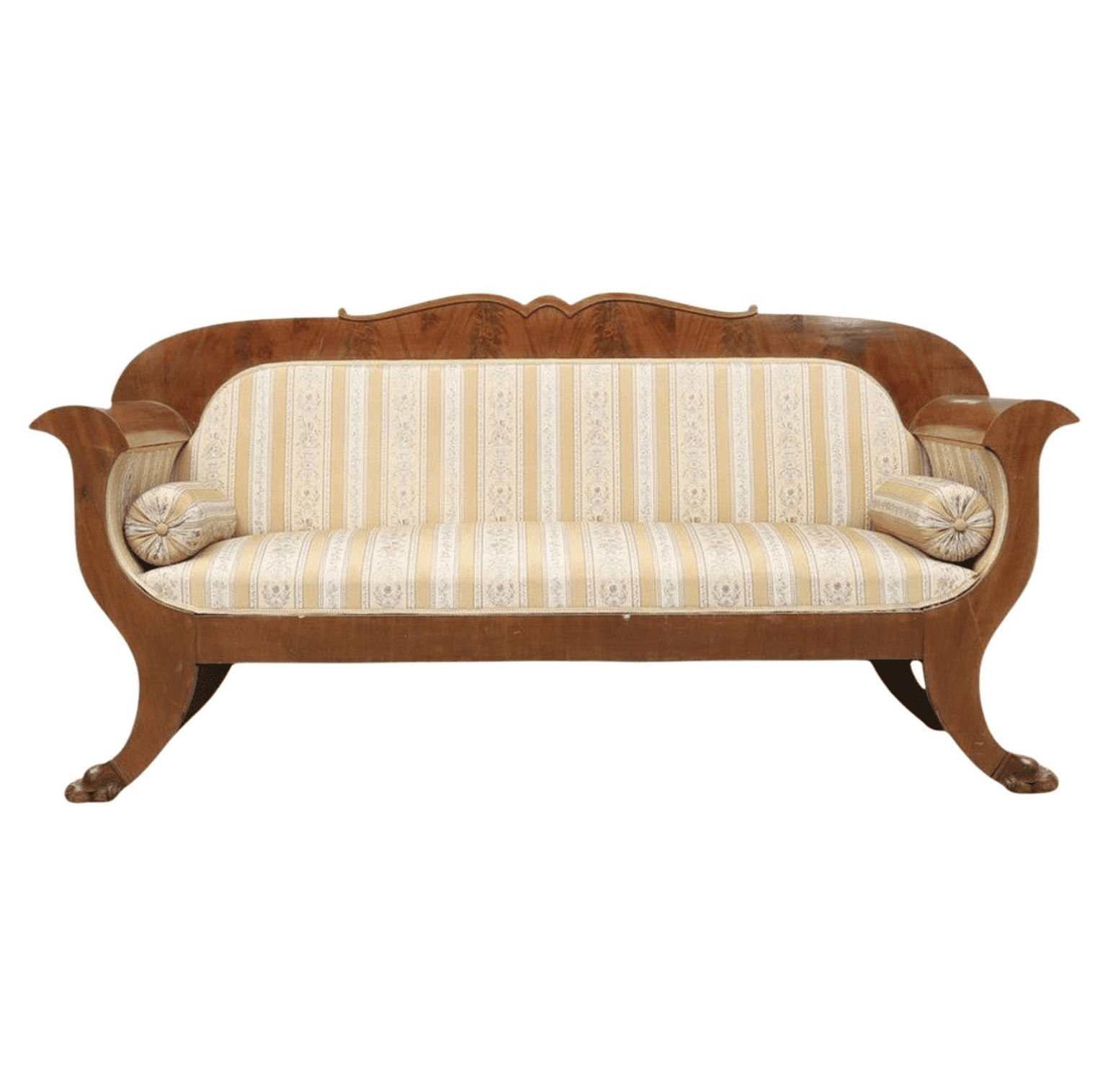 Swedish Biedermeier Antique Sofa – Quilted Figured Veneer, Mid-Oak French Polish