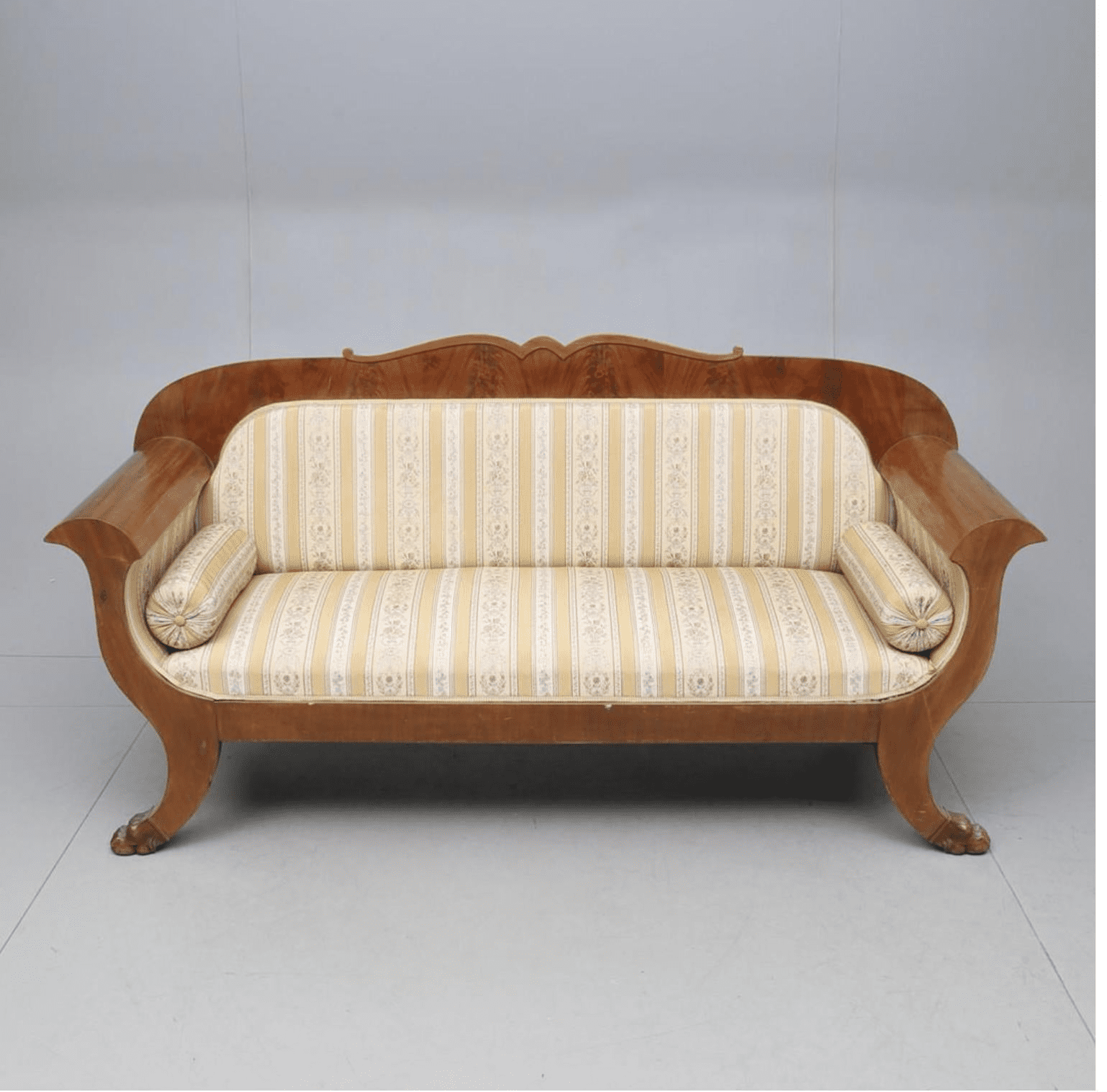 - As is typical for Biedermeier sofas, the back was originally left unfinished for placement against a wall. If preferred, we can reupholster the back in either your fabric or plain hessian for a seamless freestanding look.