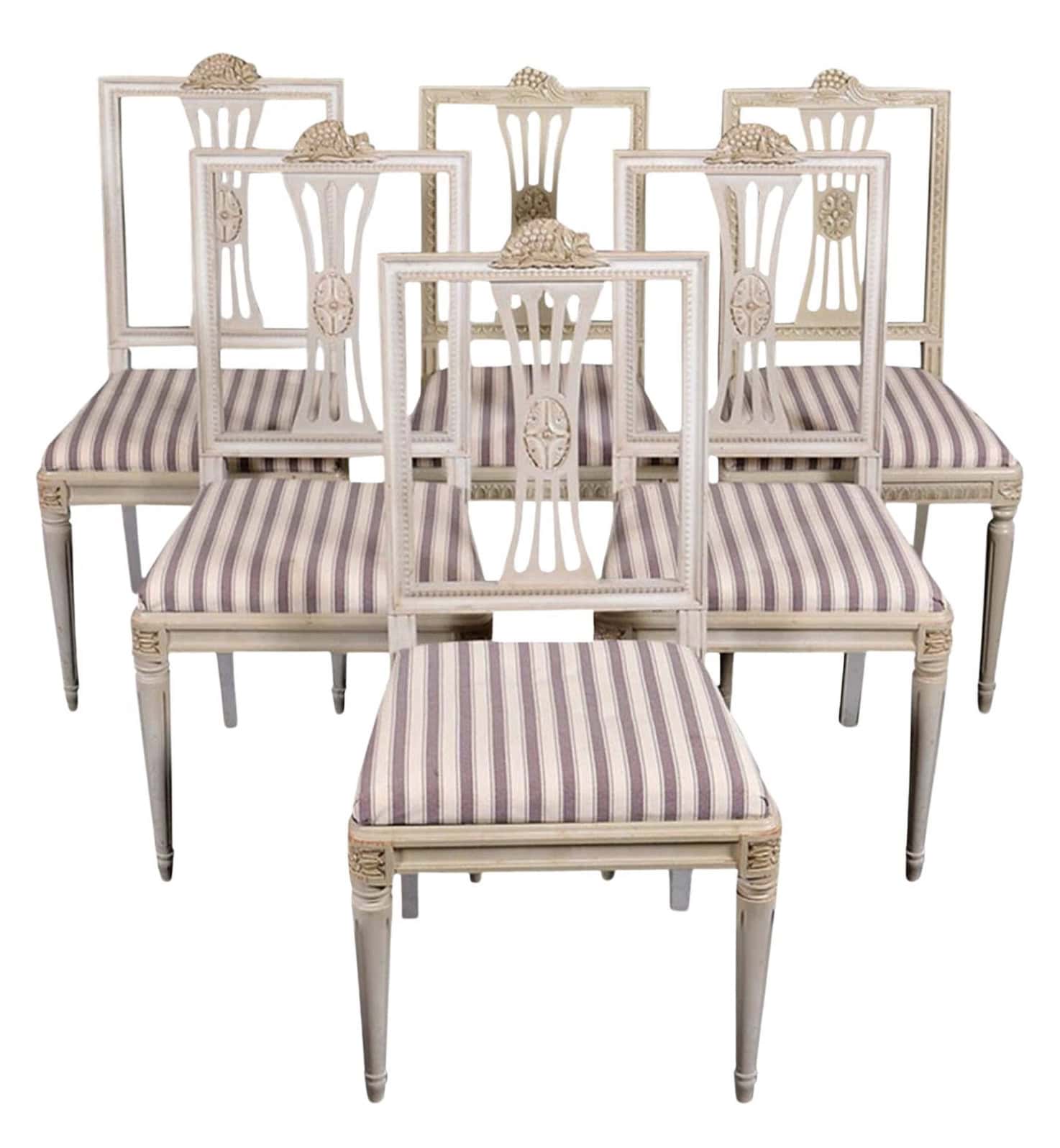 Swedish Gustavian Dining Chairs – Set of 6 Lindome Chairs with Carved Detail