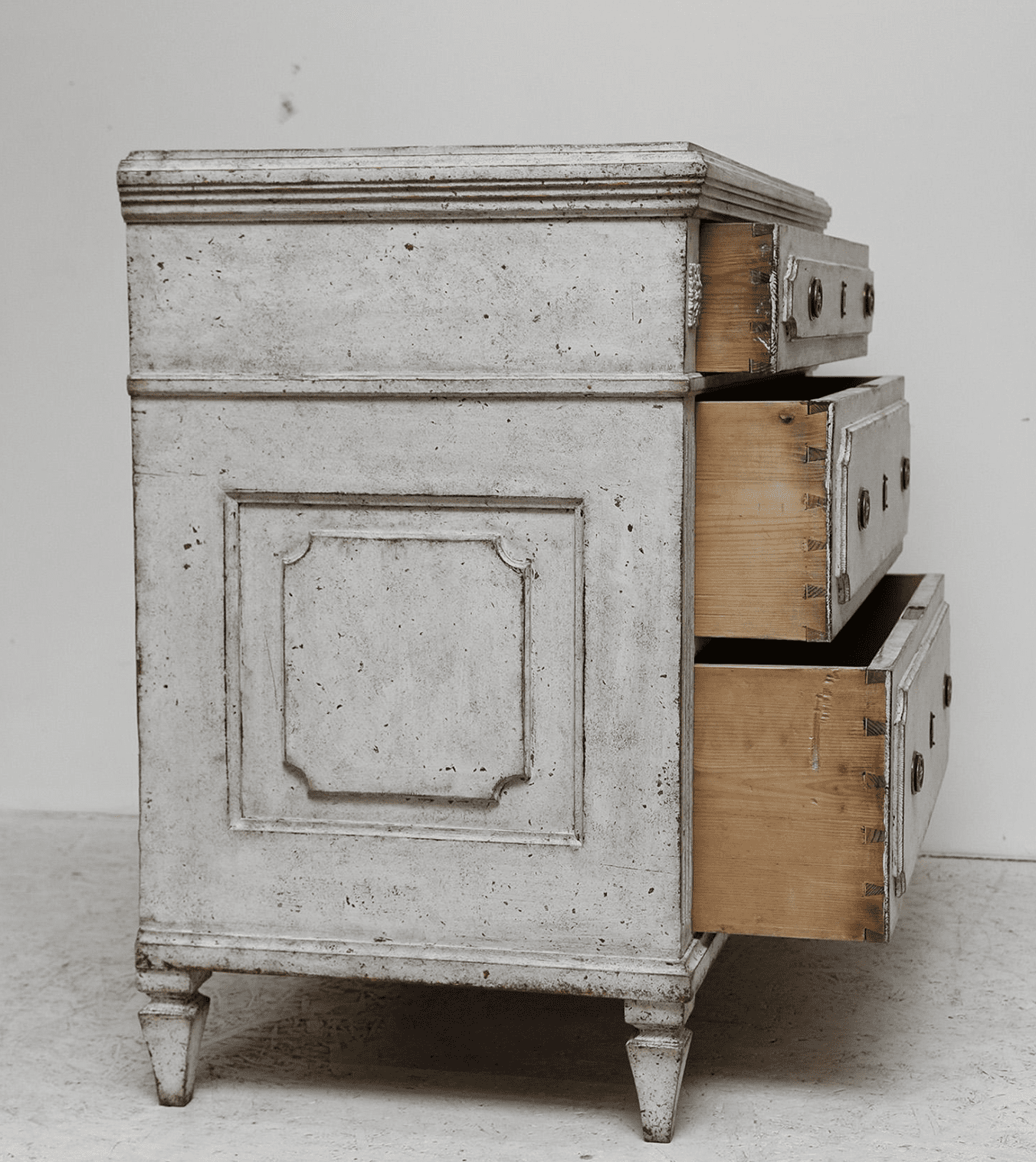 Swedish Gustavian Painted Chest of Drawers – Grey-White Commode, Ribbed Detail, 1850-1880