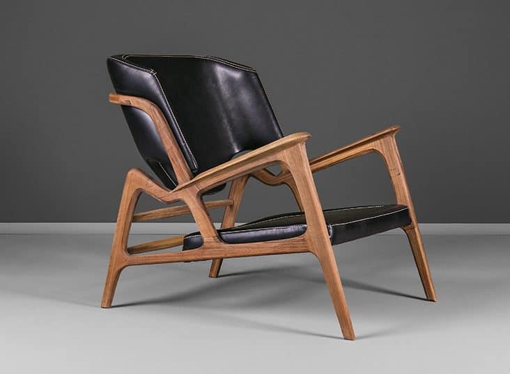The chair shown on the picture is walnut with black Mastrotto Italian leather upholstery.