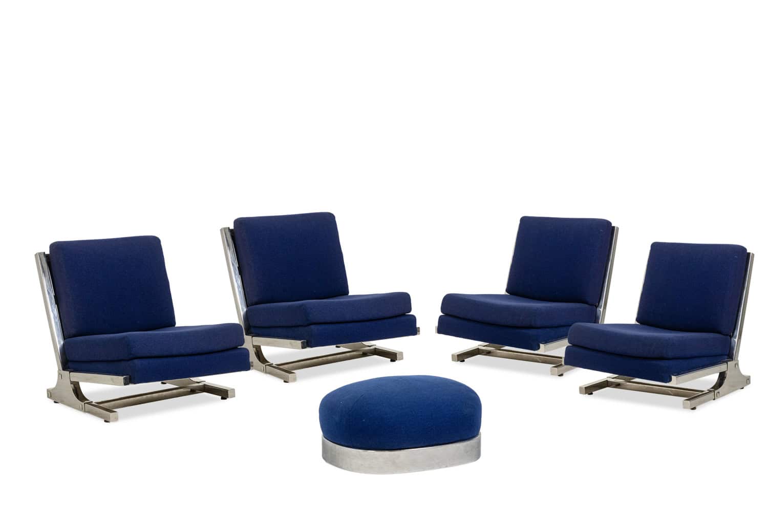 Valérian Rybar Armchairs and Ottoman – 1970s Chrome Lounge Set