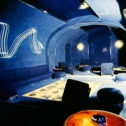 The Valérian Rybar Armchairs and Ottoman combine sculptural lines with relaxed seating. The low profile enhances the lounge character of the design. Collectors value the Valérian Rybar Armchairs and Ottoman for their distinctive 1970s aesthetic. The set works well in modern living rooms and design-focused interiors.