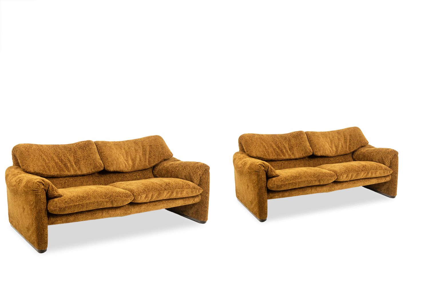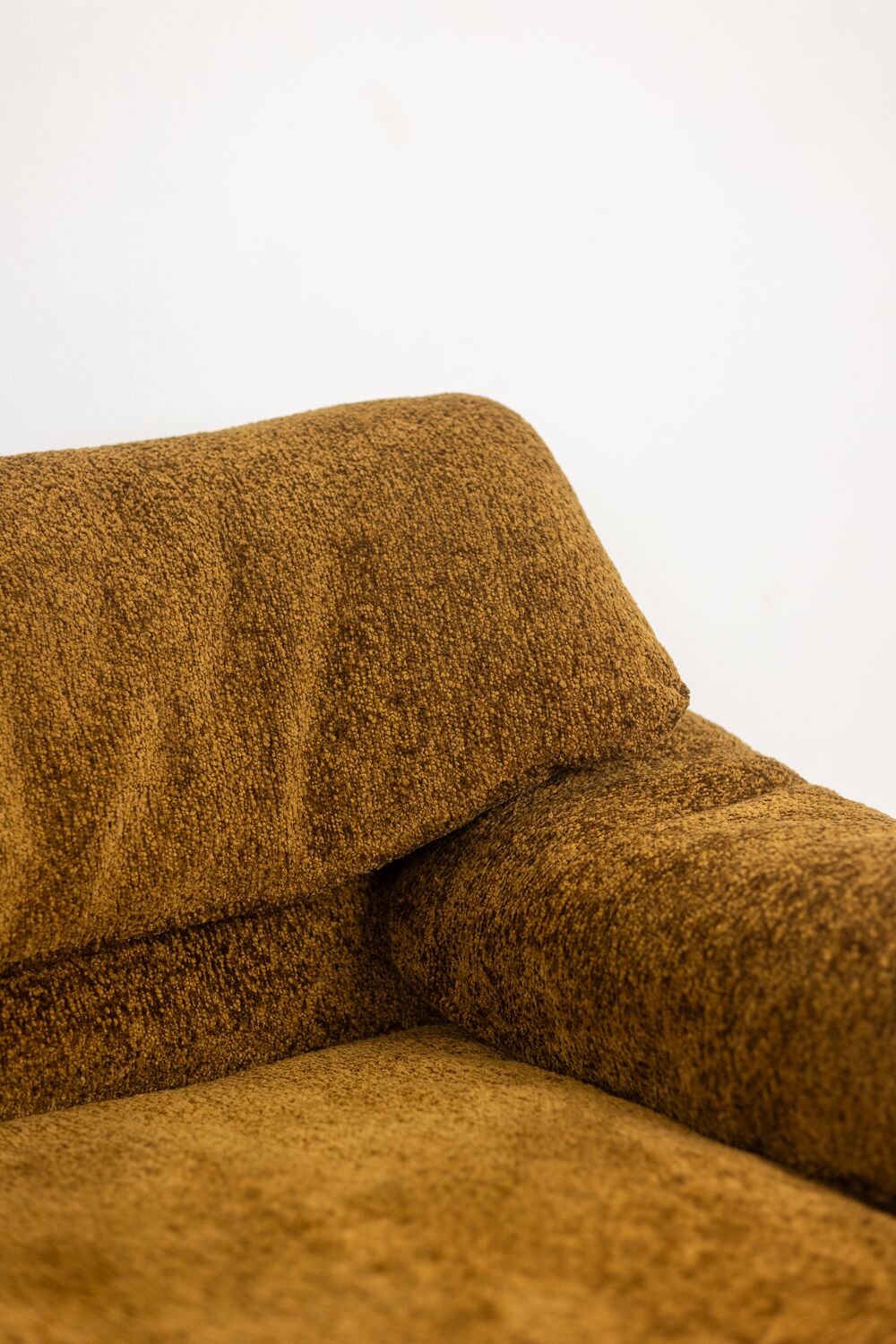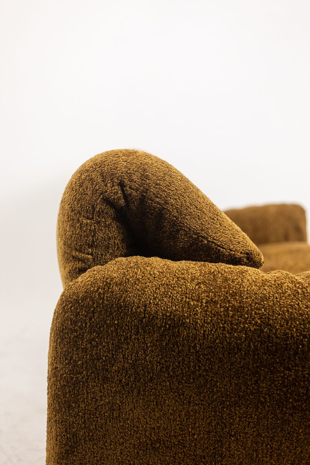 Discover this iconic Vico Magistretti Sofa, the celebrated “Maralunga” model from the 1970s. Vico Magistretti designed this sofa with comfort, innovation, and Italian elegance in mind. This Vico Magistretti Sofa features rich khaki velvet and textured fabric upholstery. The materials create depth, softness, and refined character. The compact proportions suit modern living spaces and curated interiors.