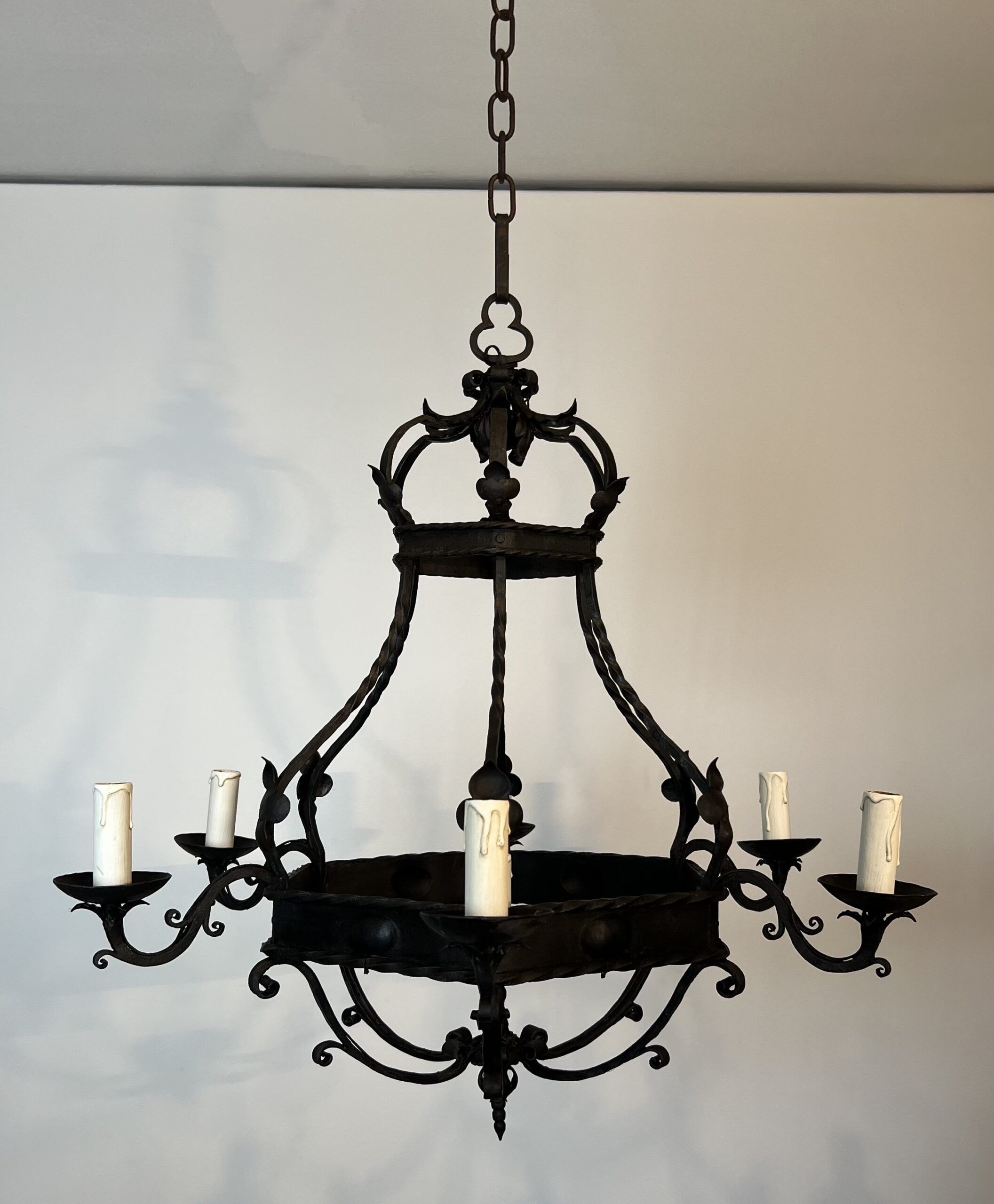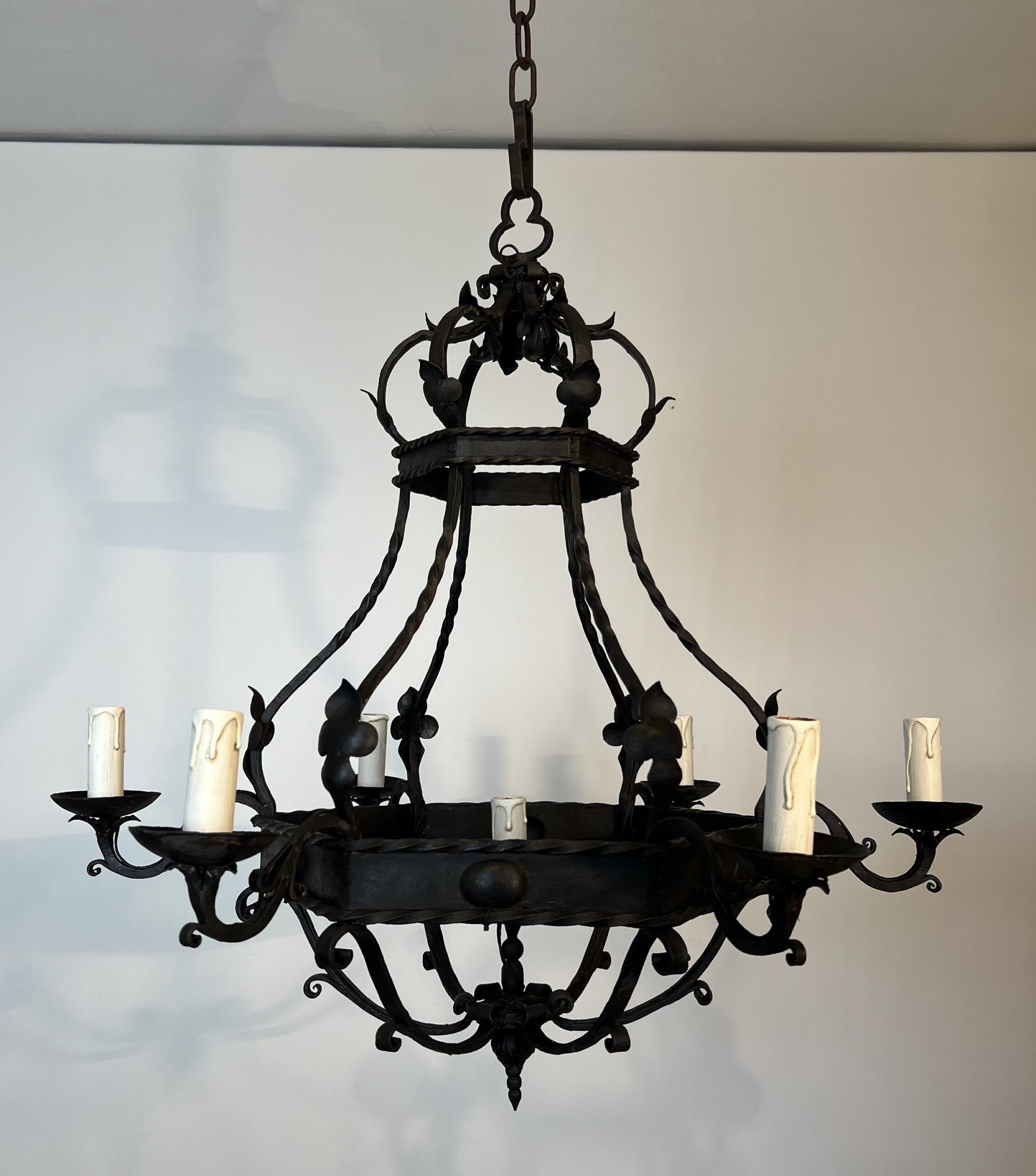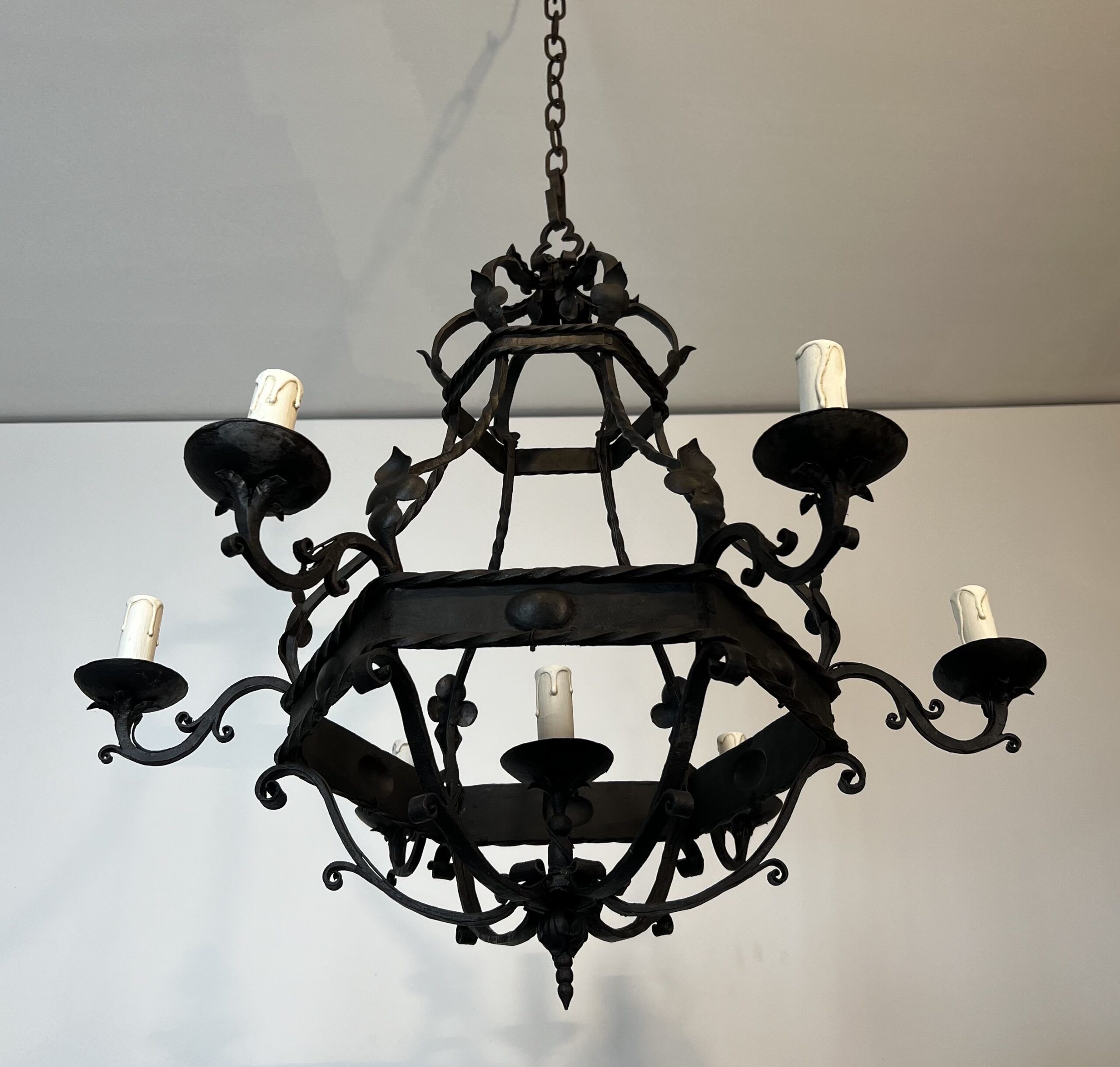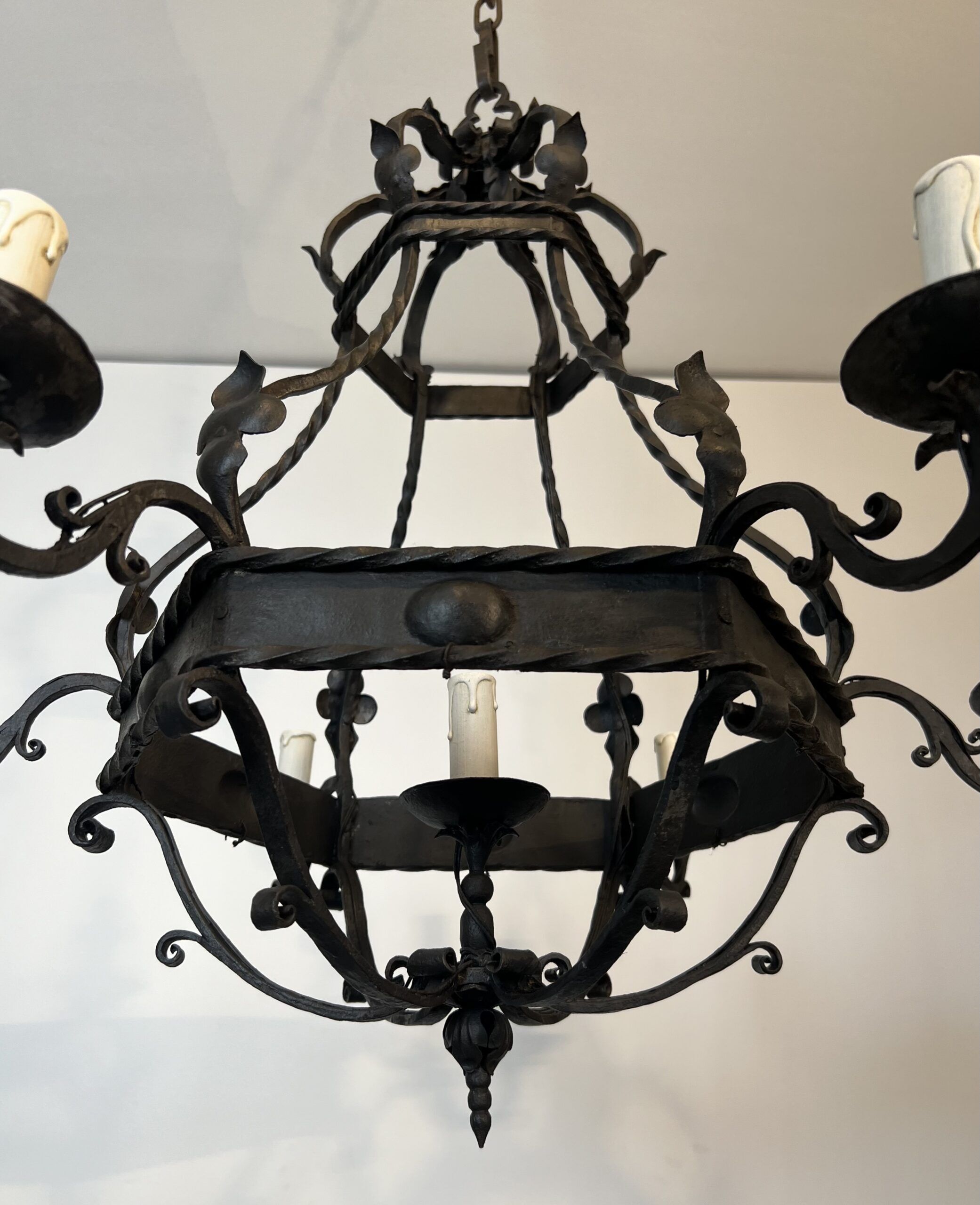 Wrought Iron Cage Chandelier with 7 Lights in the Gothic Style,1950