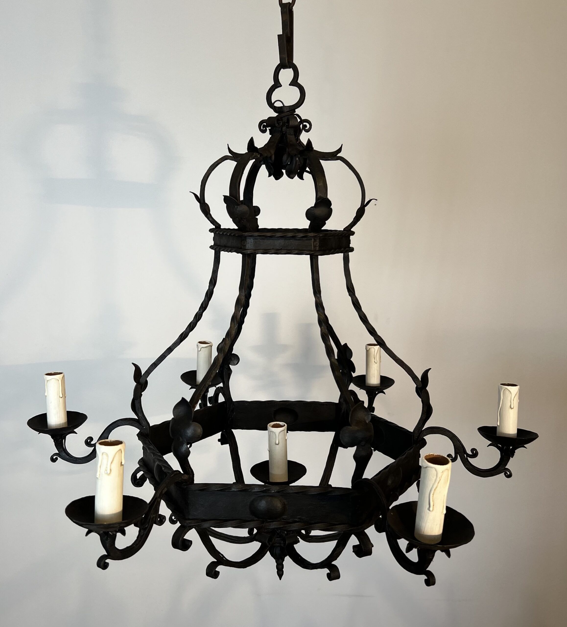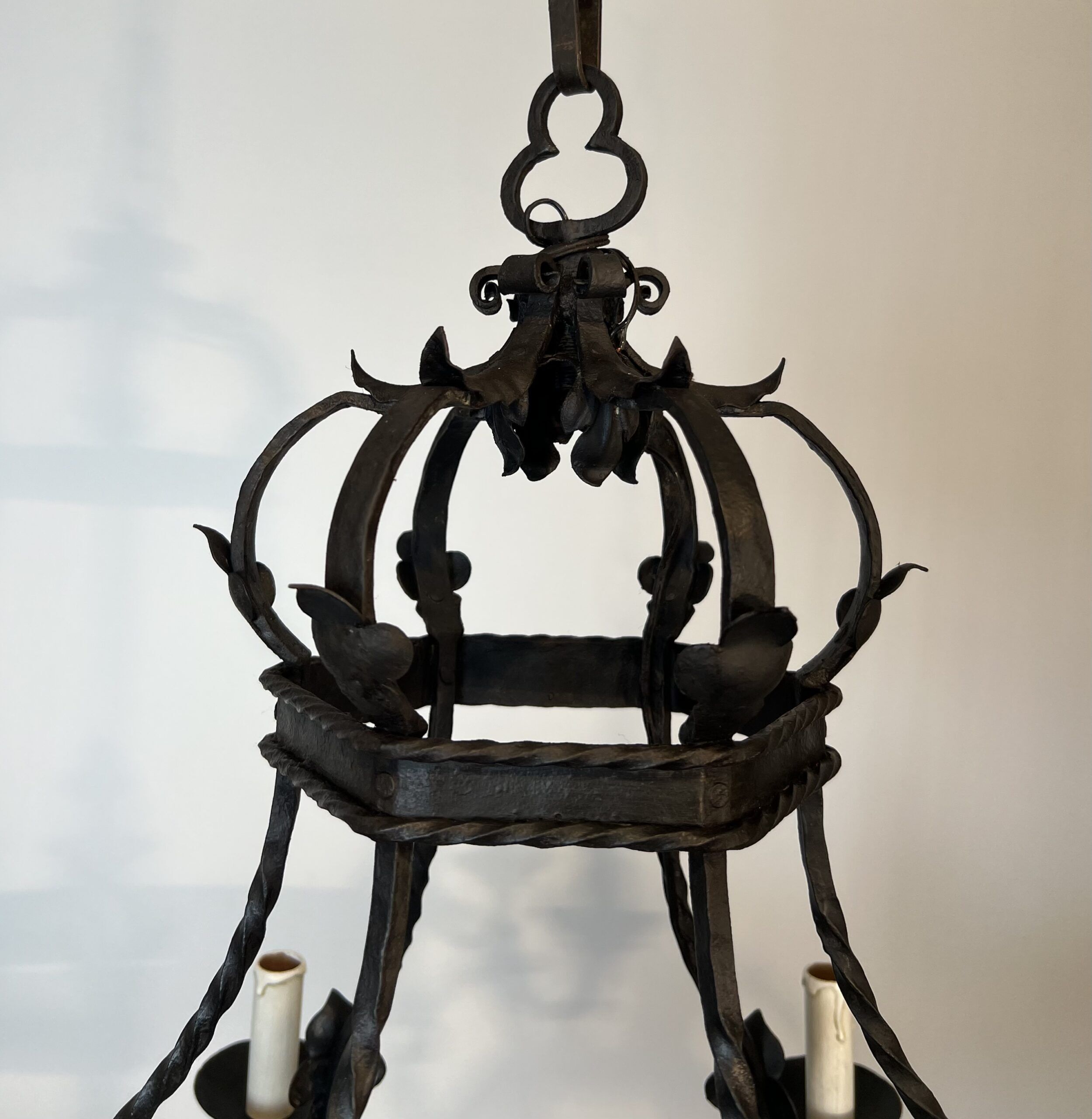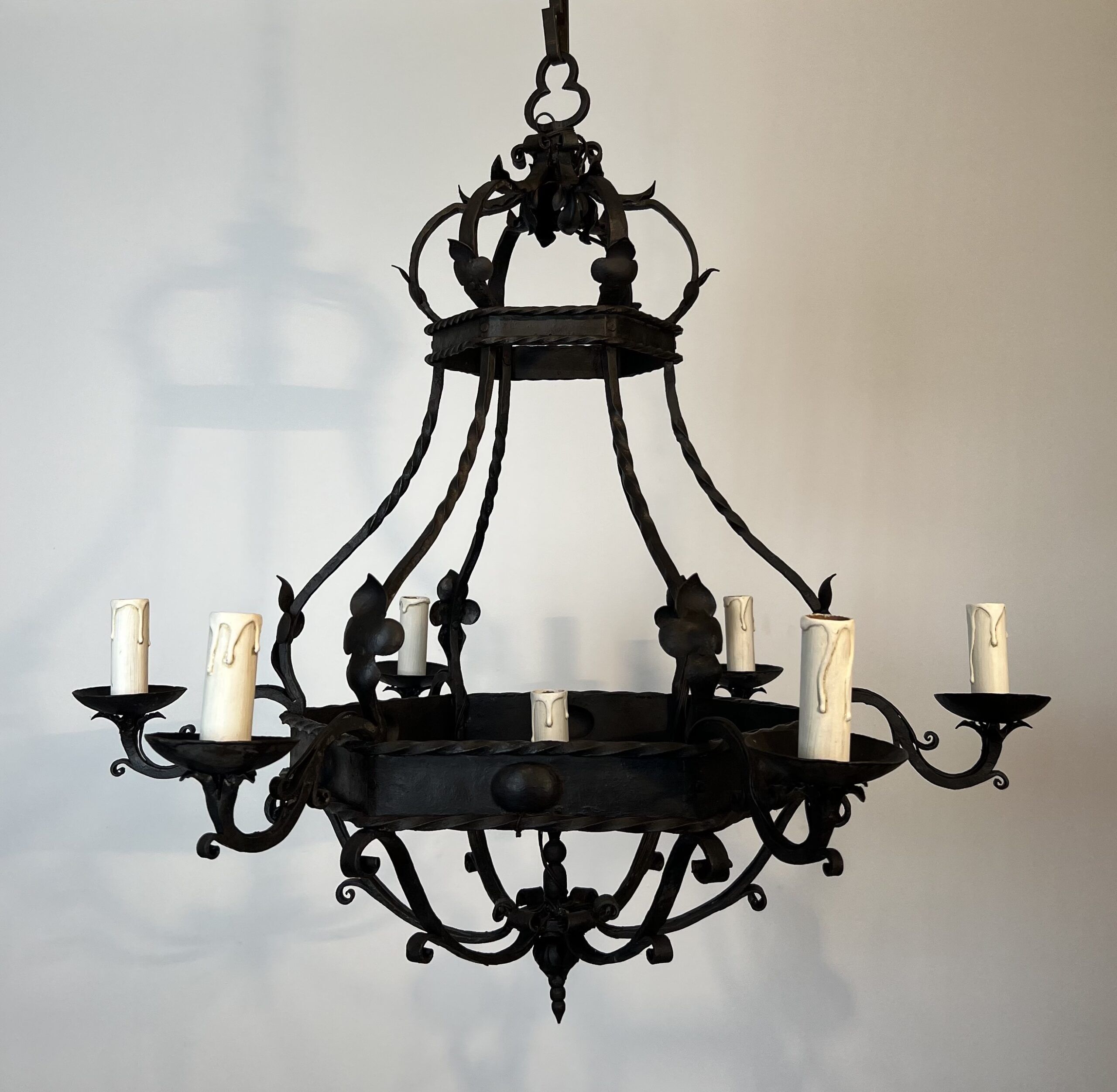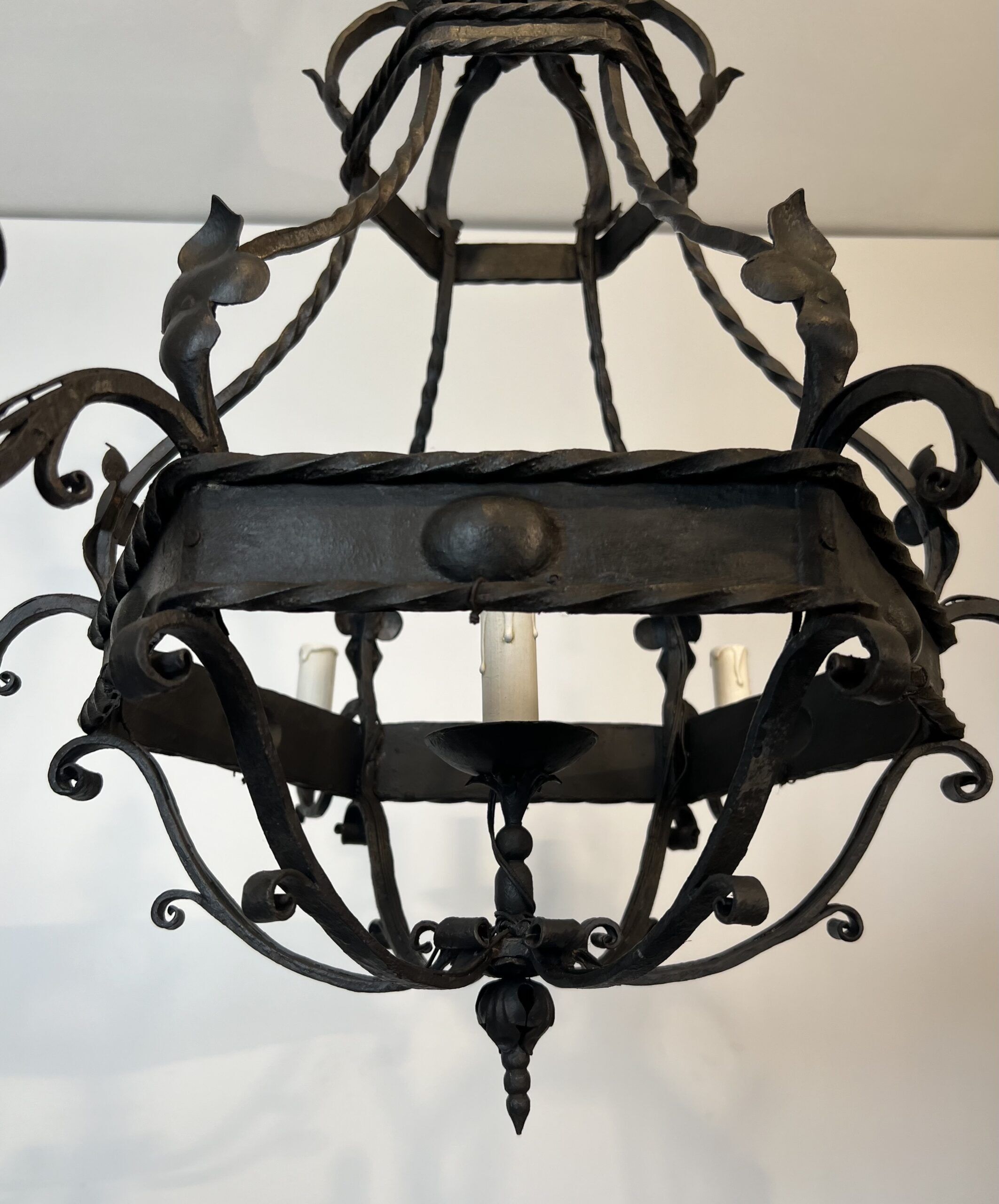 Wrought Iron Cage Chandelier with 7 Lights in the Gothic Style,1950