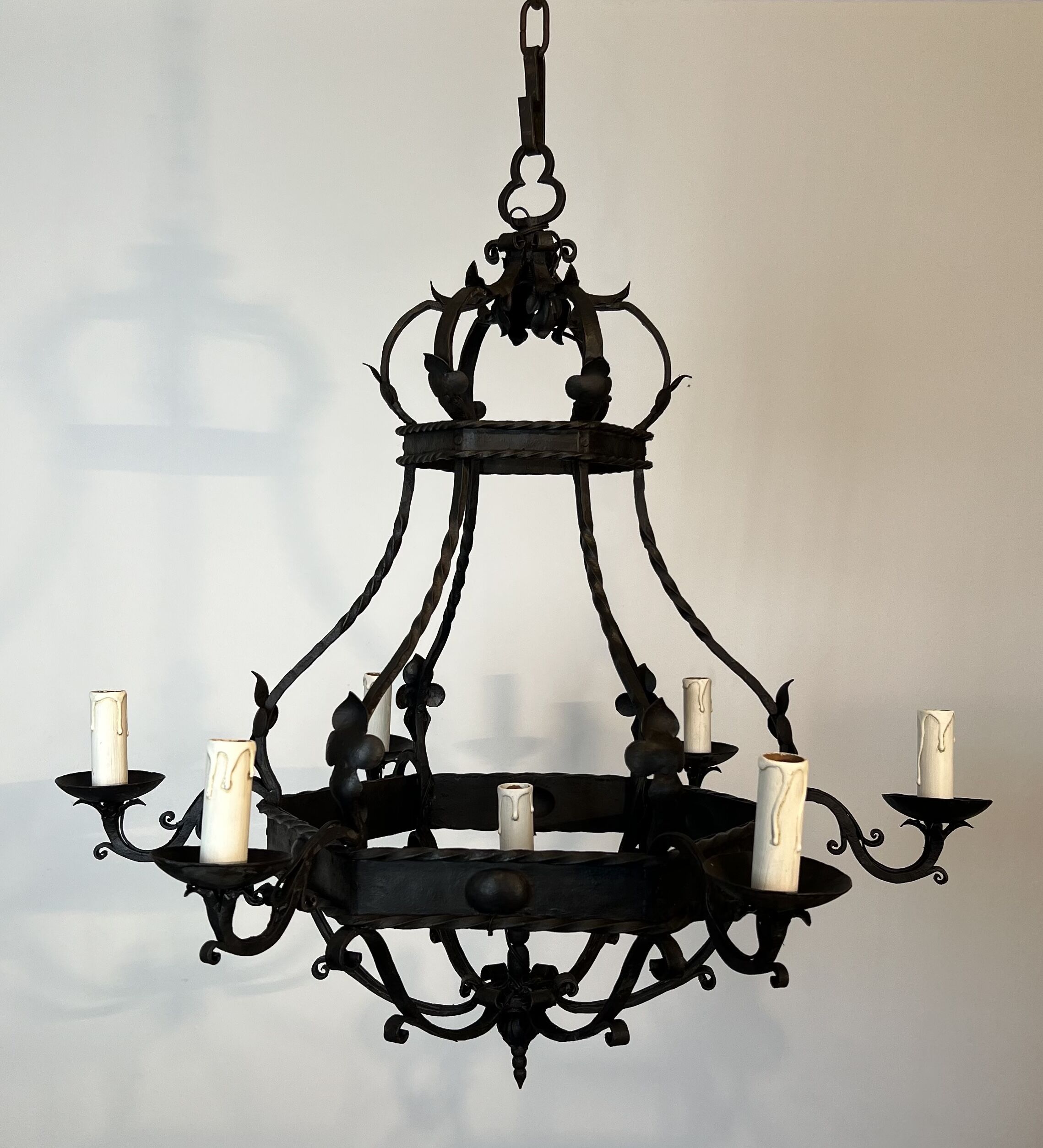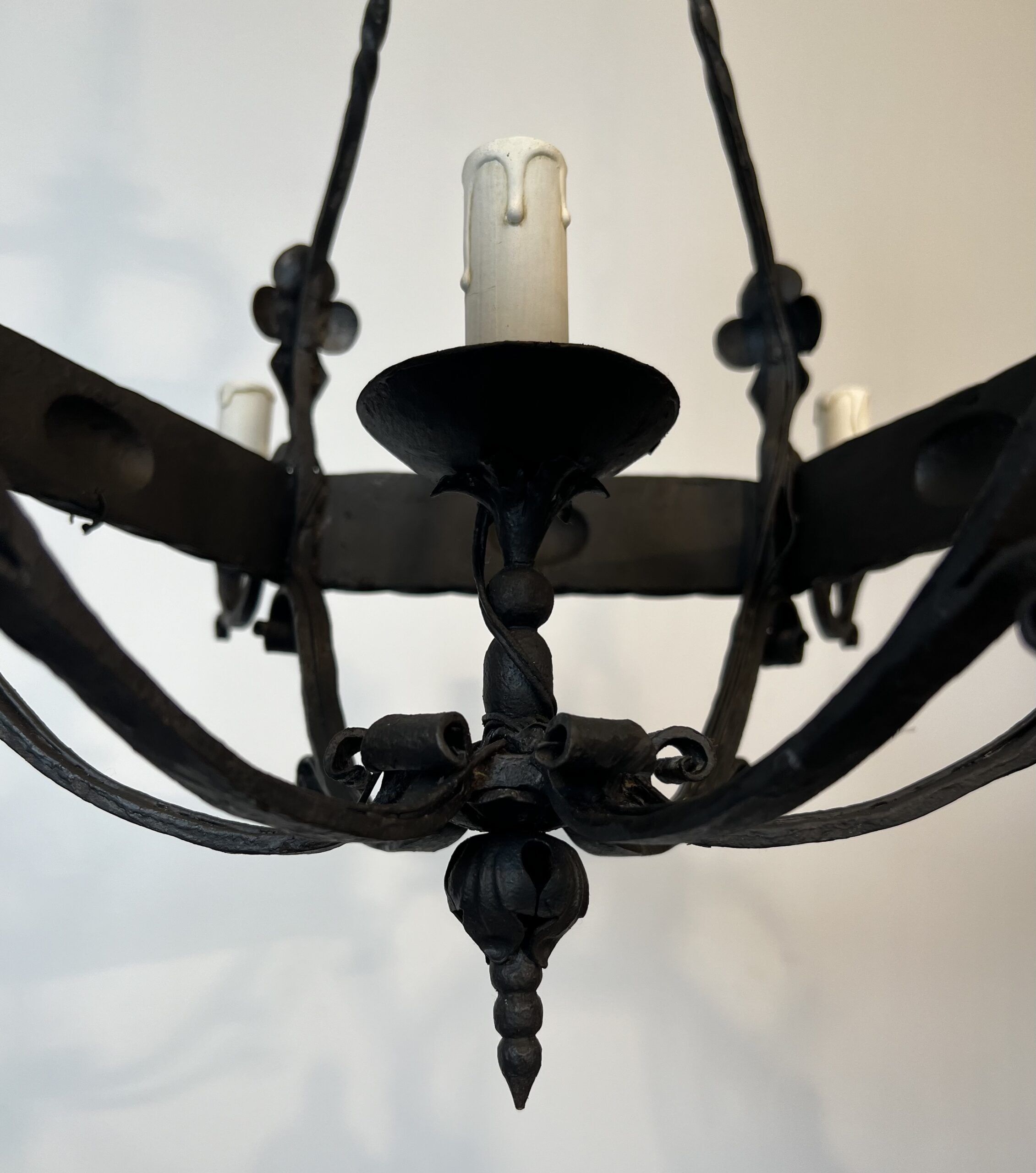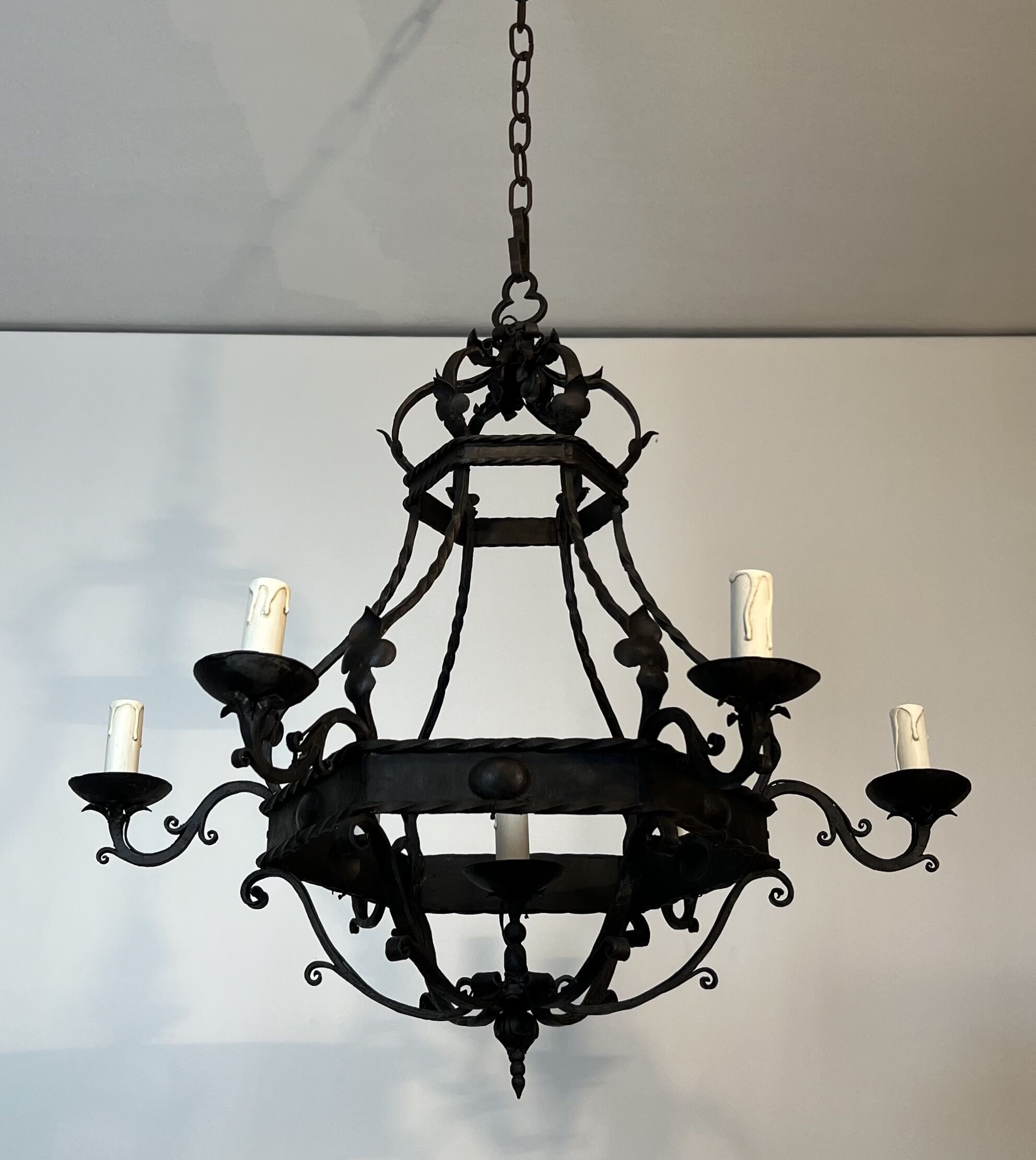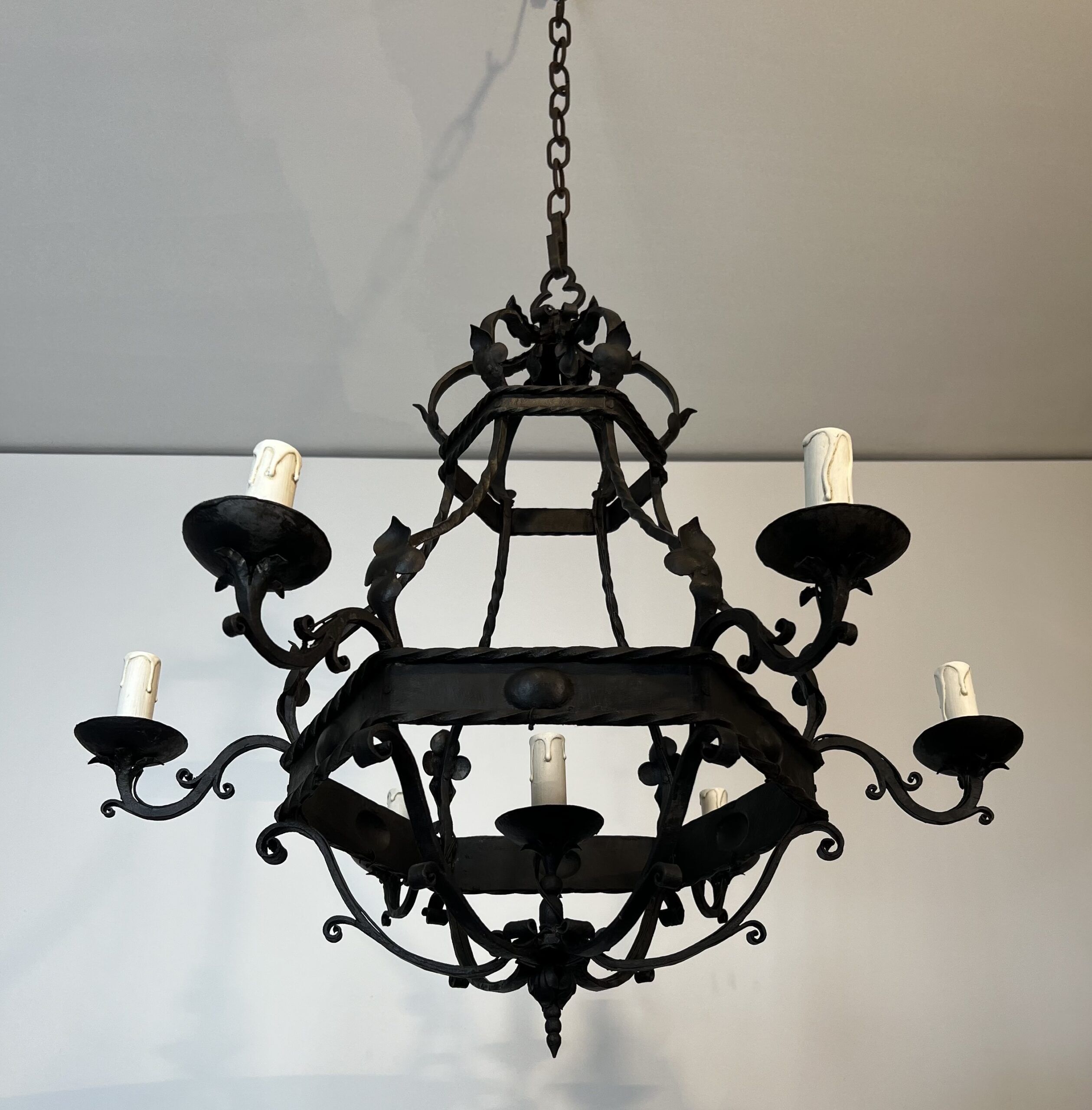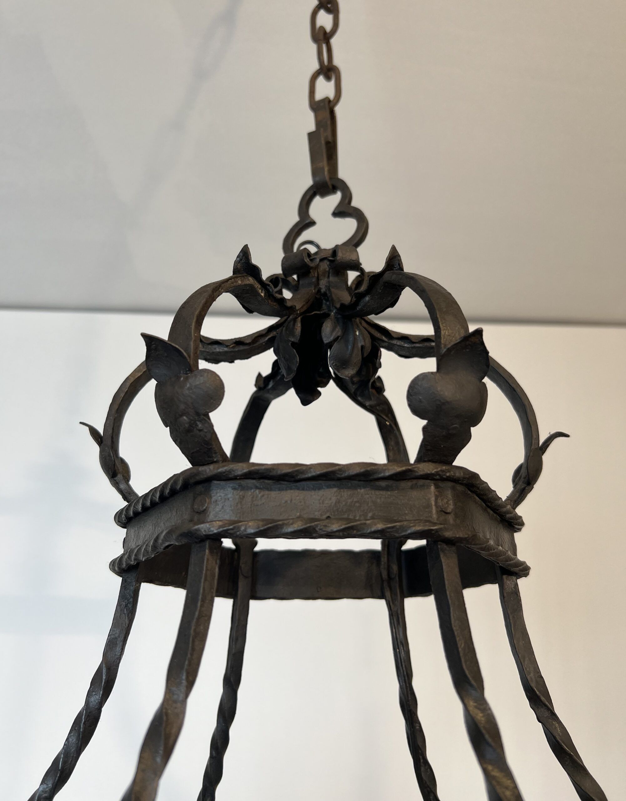 Wrought Iron Cage Chandelier with 7 Lights in the Gothic Style,1950