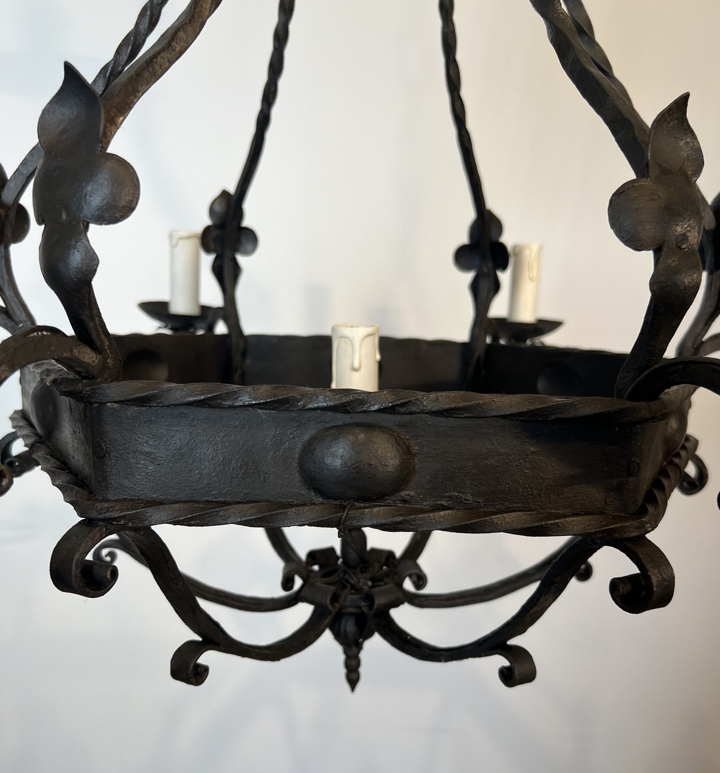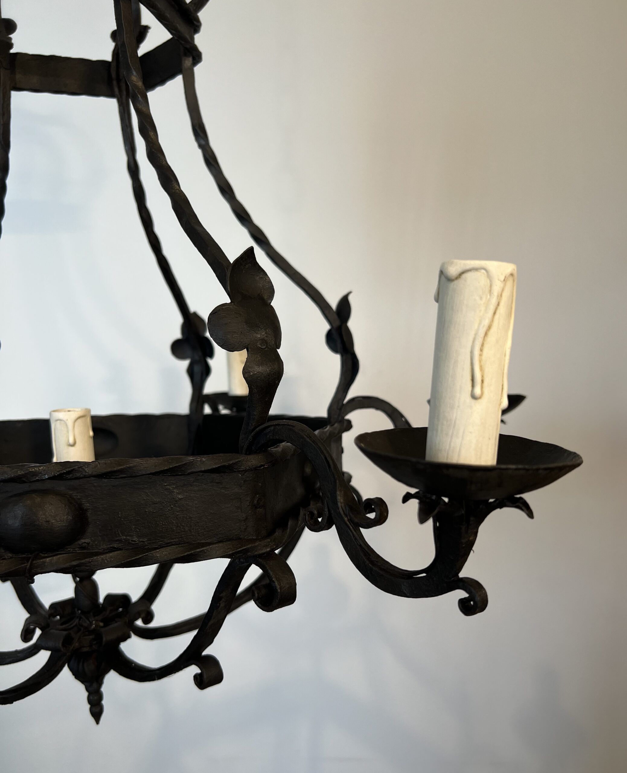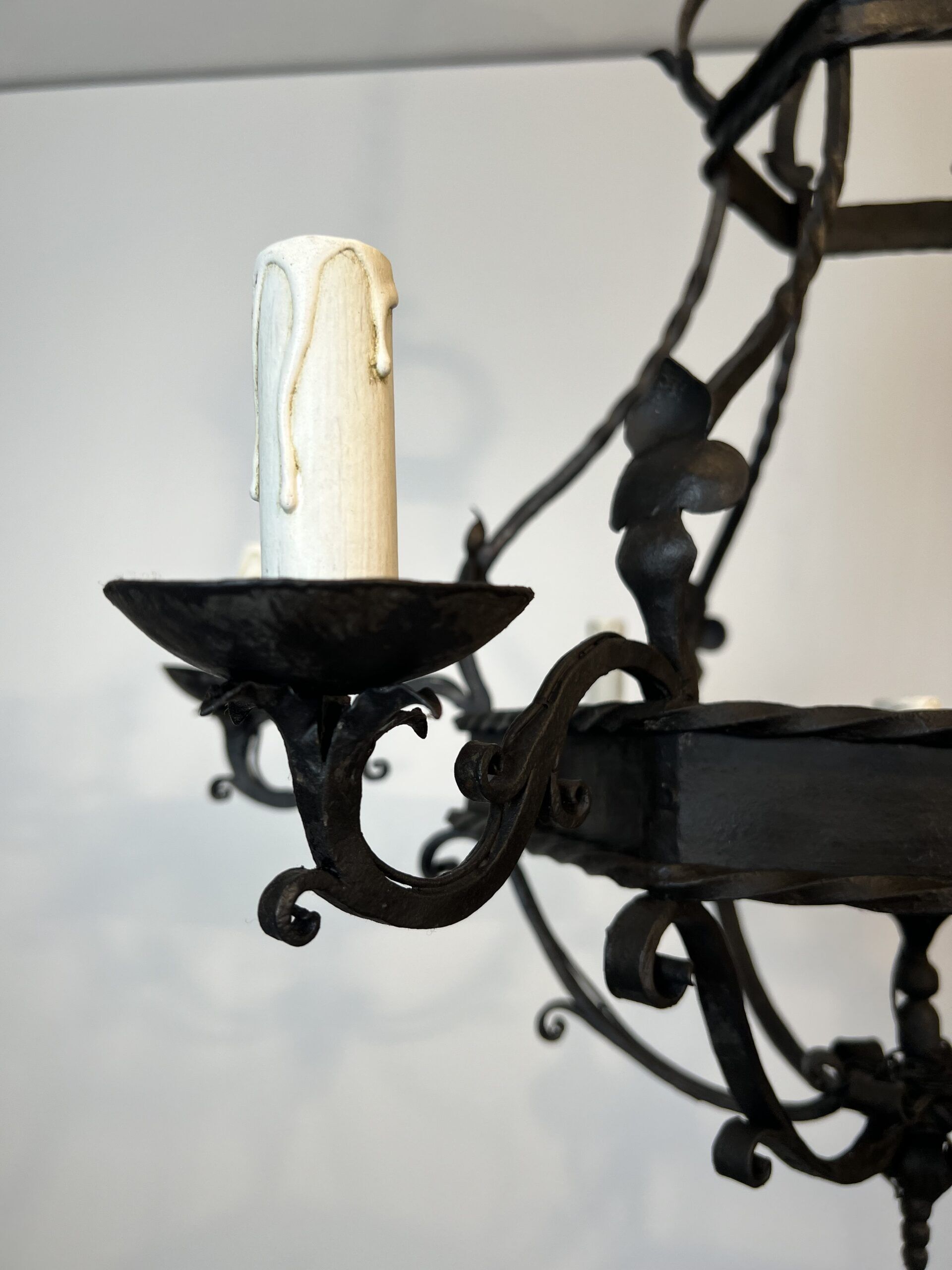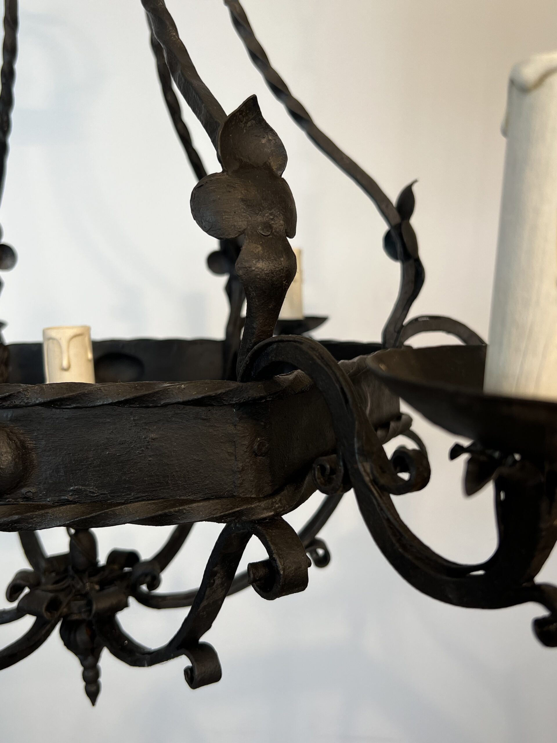 Wrought Iron Cage Chandelier with 7 Lights in the Gothic Style,1950