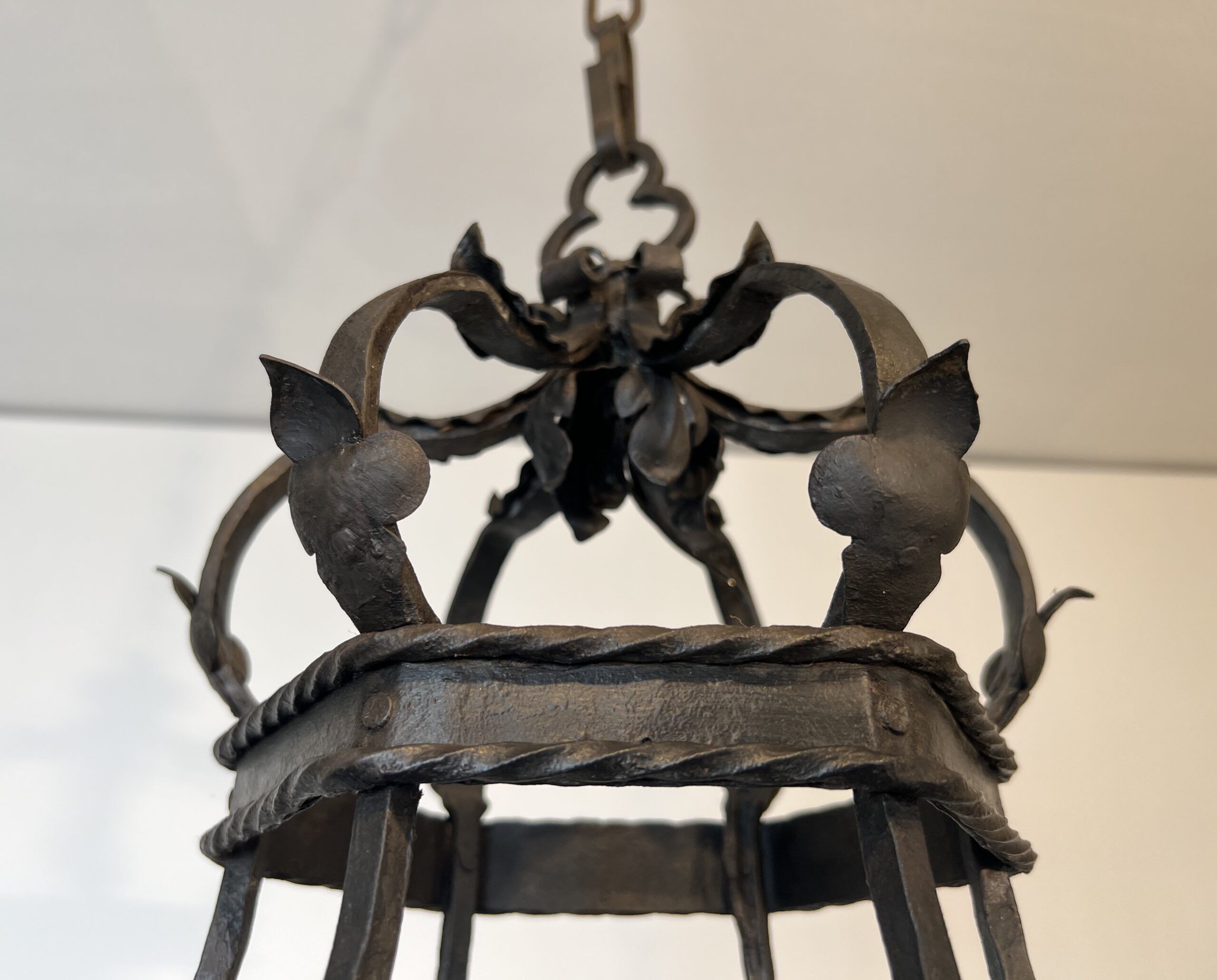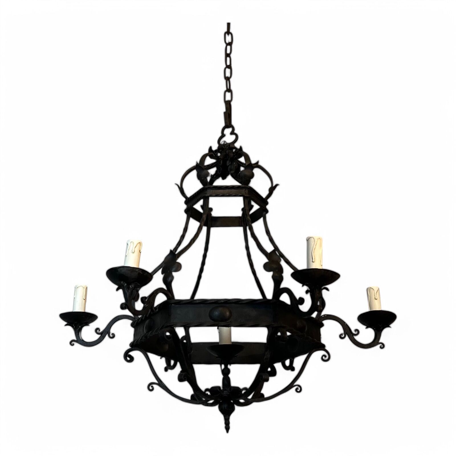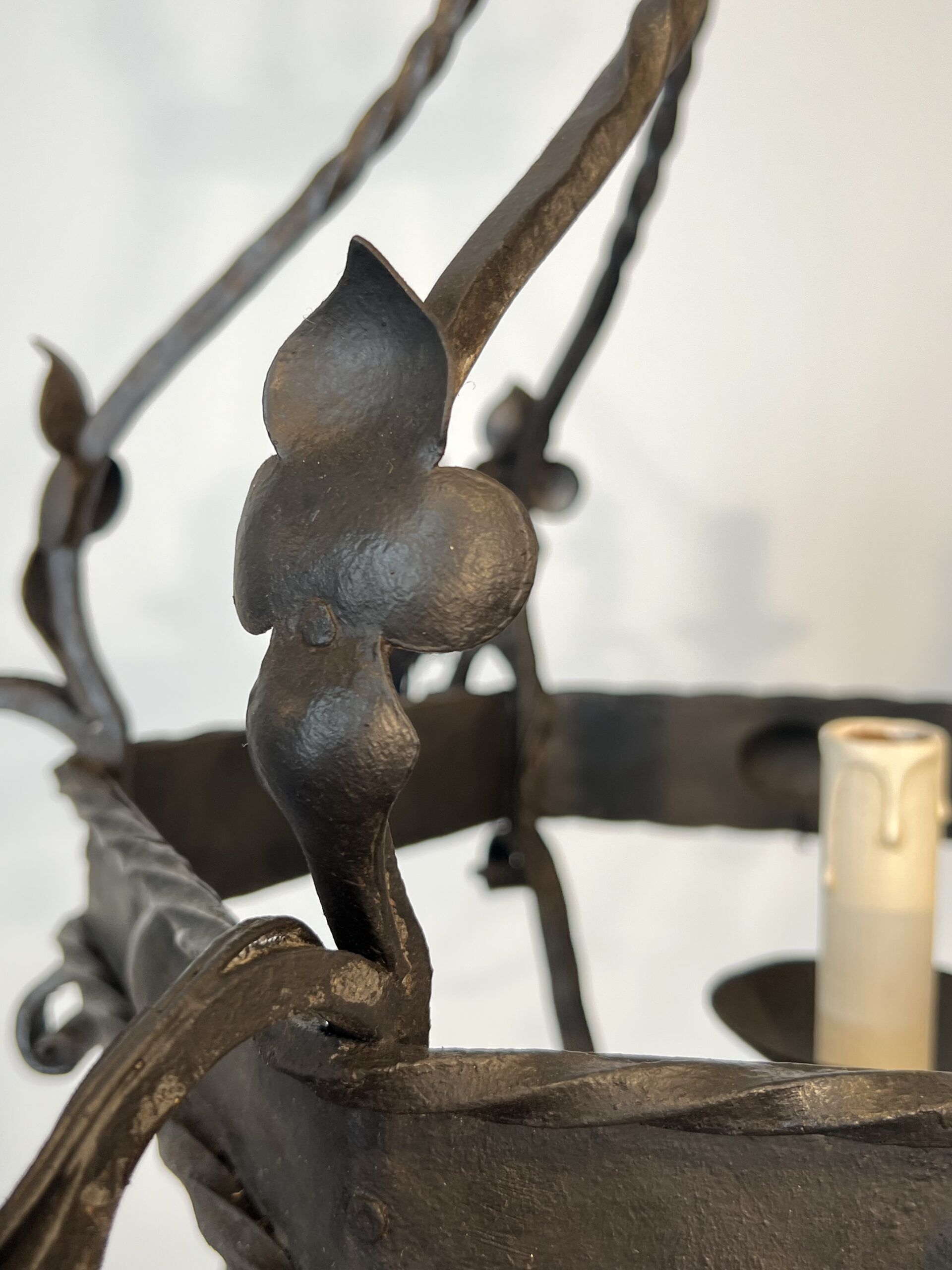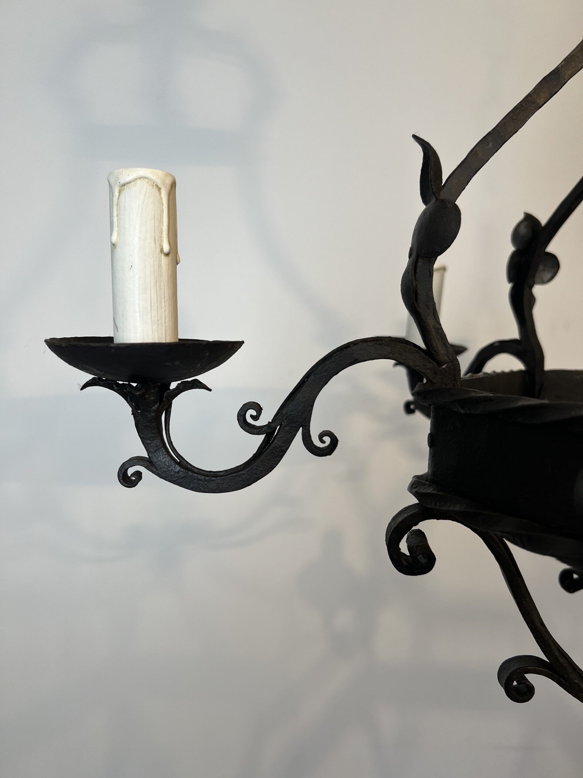 Wrought Iron Cage Chandelier with 7 Lights in the Gothic Style,1950